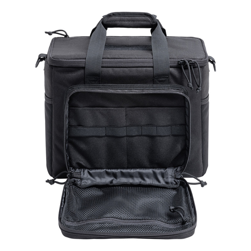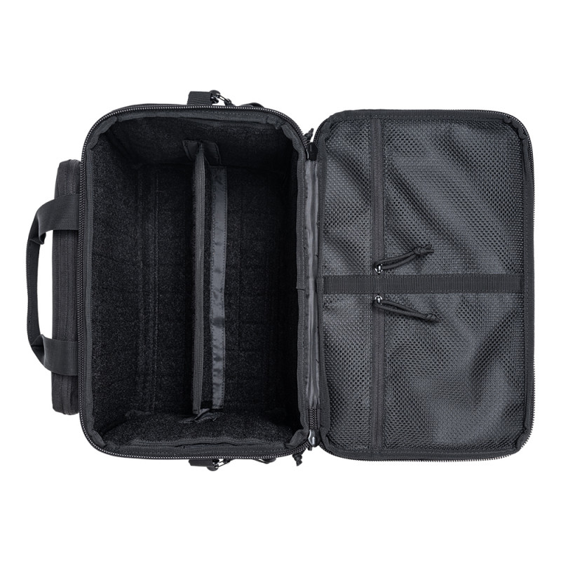 Le sac de tir DELTA vous est livré avec de nombreuses poches et un séparateur intérieur amovible afin de ranger et de sécuriser votre arme de poing lors de vos déplacements. Mais vous pouvez compléter et personnaliser votre sac avec les inserts velcro pour chargeurs et pistolet ainsi que les pochettes souples et à munitions.