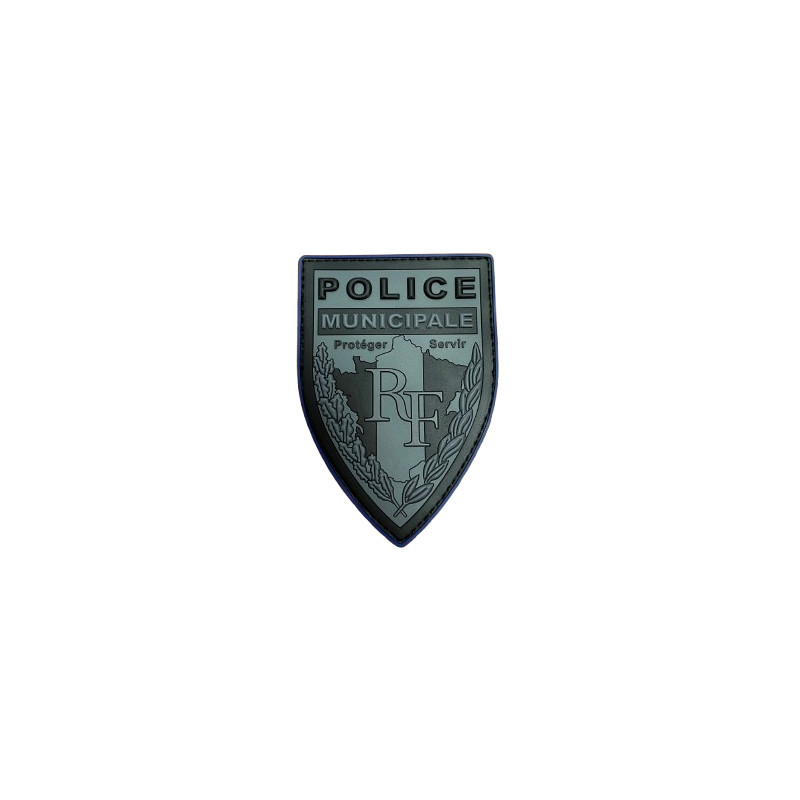 Ecusson d'épaule basse visibilité Police Municipale France en gomme avec inscription relief monté sur velcro crochet