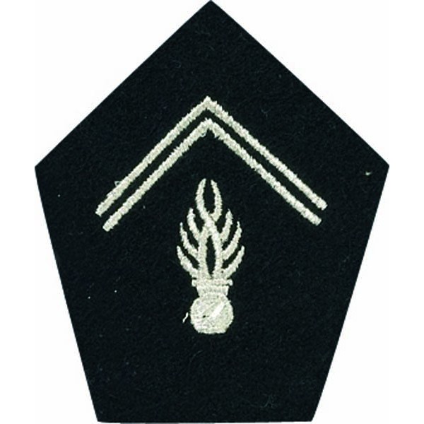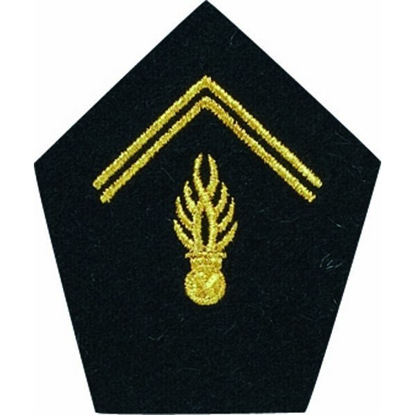 Ecussons de col sur velours de couleur noir Grenade et chevrons brodés machine :