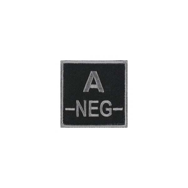Commandez dès maintenant ce patch groupe sanguin A- en fil gris sur fonds noir de dimensions 5 x 5 cm.