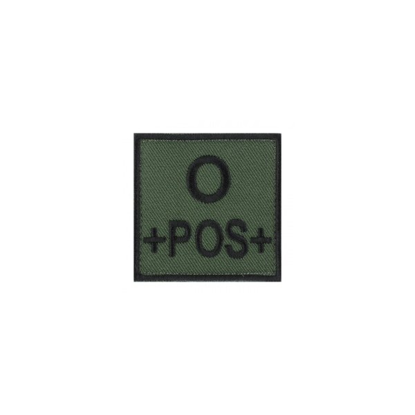 Commandez dès maintenant ce patch groupe sanguin O+ en fil noir sur fonds vert kaki de dimensions 5 x 5 cm.