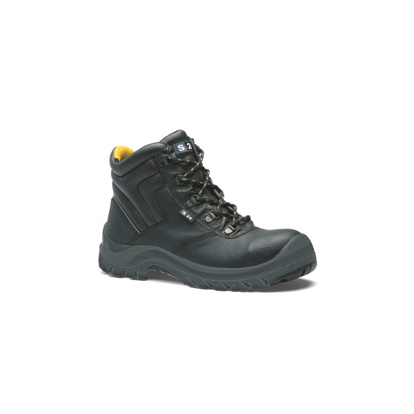 Chaussures de Sécurité hautes S3normes ISO 20345:2011 S3 SRA en cuir grainé noirfermeture à lacets ronds.
