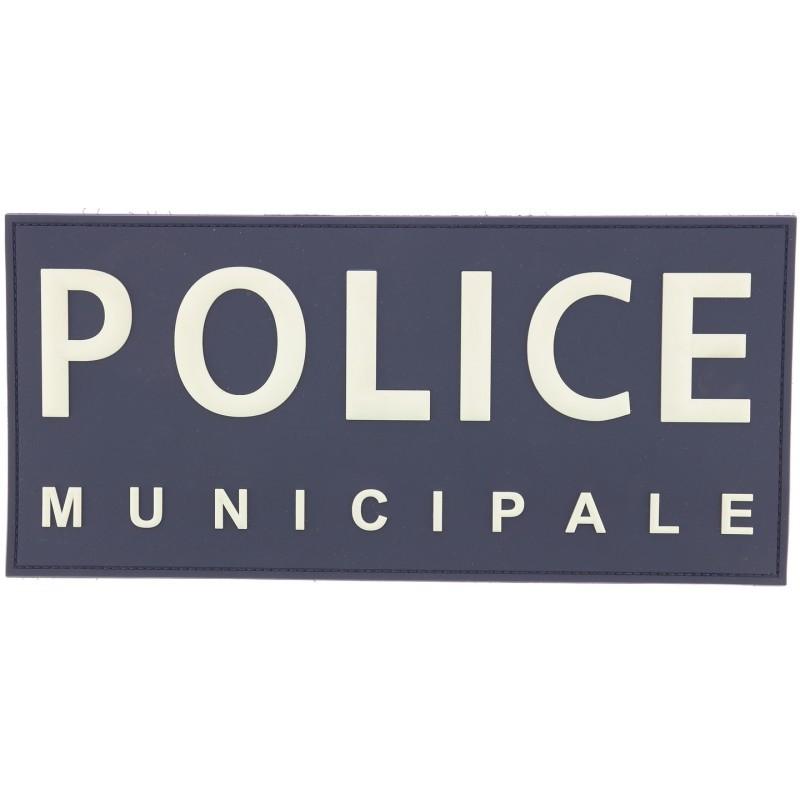 Flap PVC Police Municipale dos fond bleu et lettrage blanc posé sur support velcro crochet 5 mm