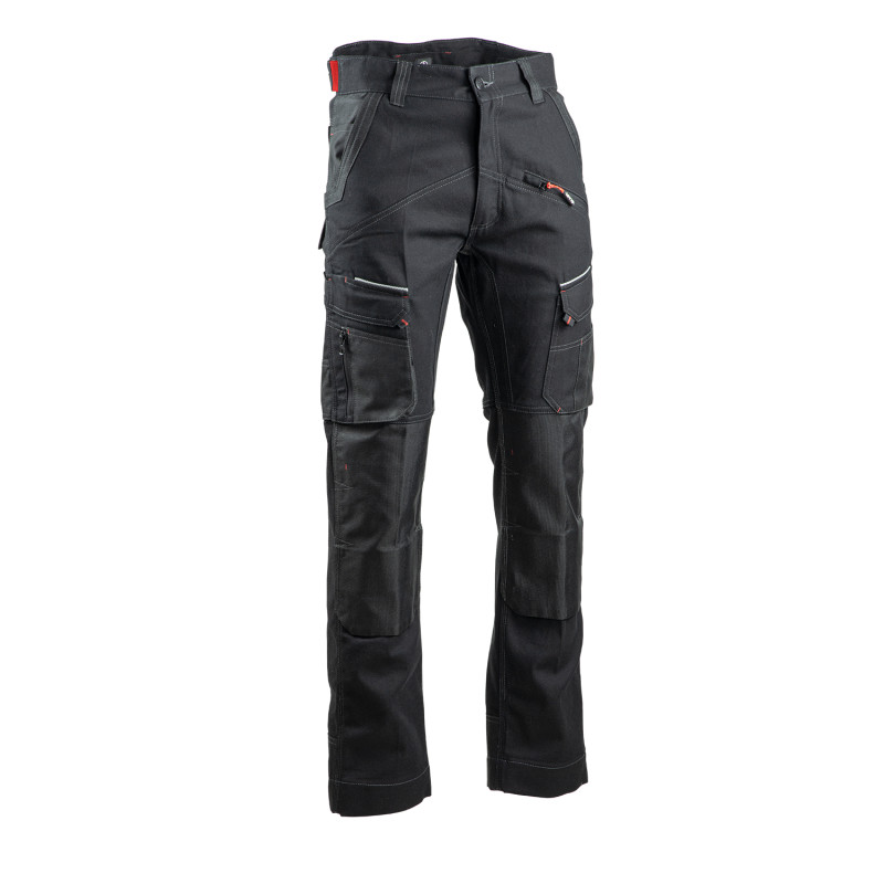 Pantalon noir multipoches avec poches genouillères 68% coton / 30% polyester / 2% élasthanne - 300 g/m2 :