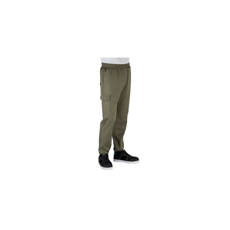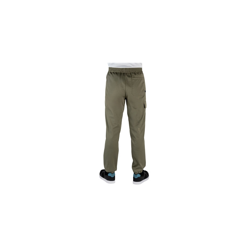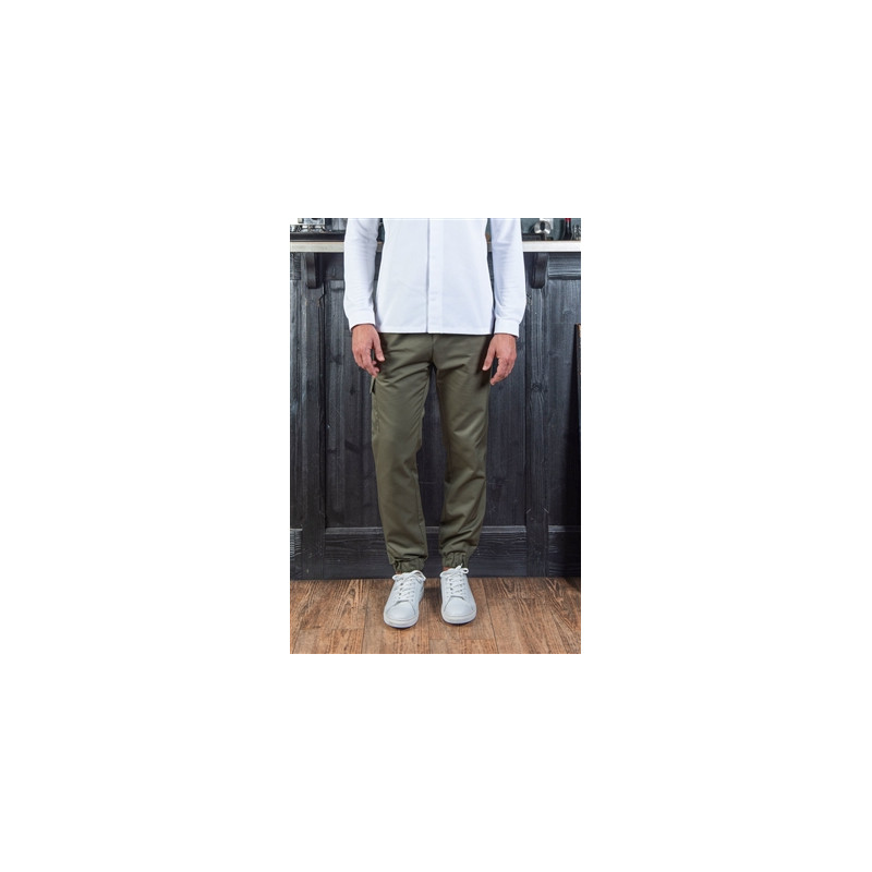 Pantalon jogging de cuisine unisexe taille élastiquée en polyester / coton kaki - 195 gr/m2: