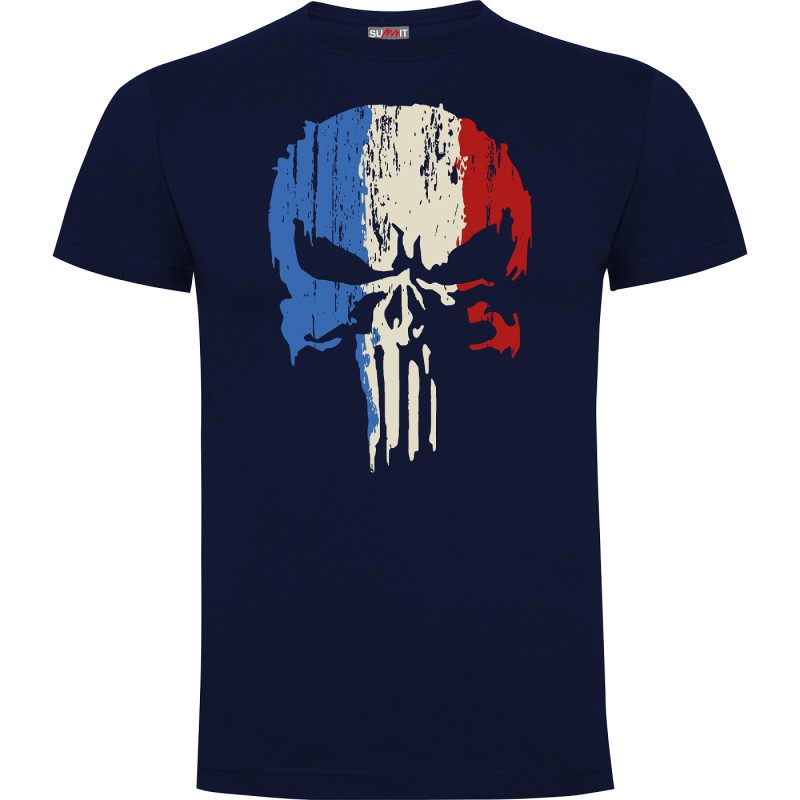 Tee-shirt marine Punisher tricolore - 100% coton jersey 165 g/m2
