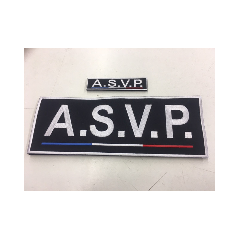 Découvrez vite sur www.habimat-shop.com ce jeu de bandeaux pour les agents de surveillance de la voie publique A.S.V.P. en lettrage blanc sur fond noir avec un liseret tricolore au bas du bandeau.