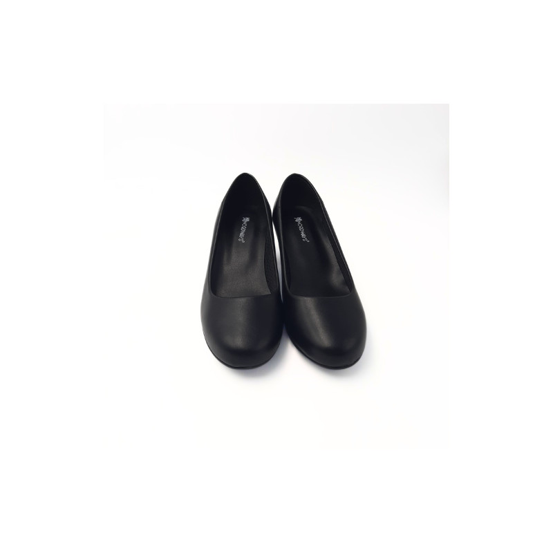 Compléter alors votre tenue de service en salle ou d’accueil en hôtellerie par ce modèle de ballerine en cuir noir avec un talon de 4 cm.