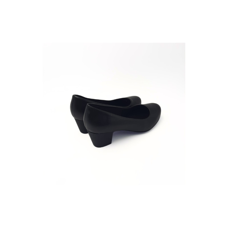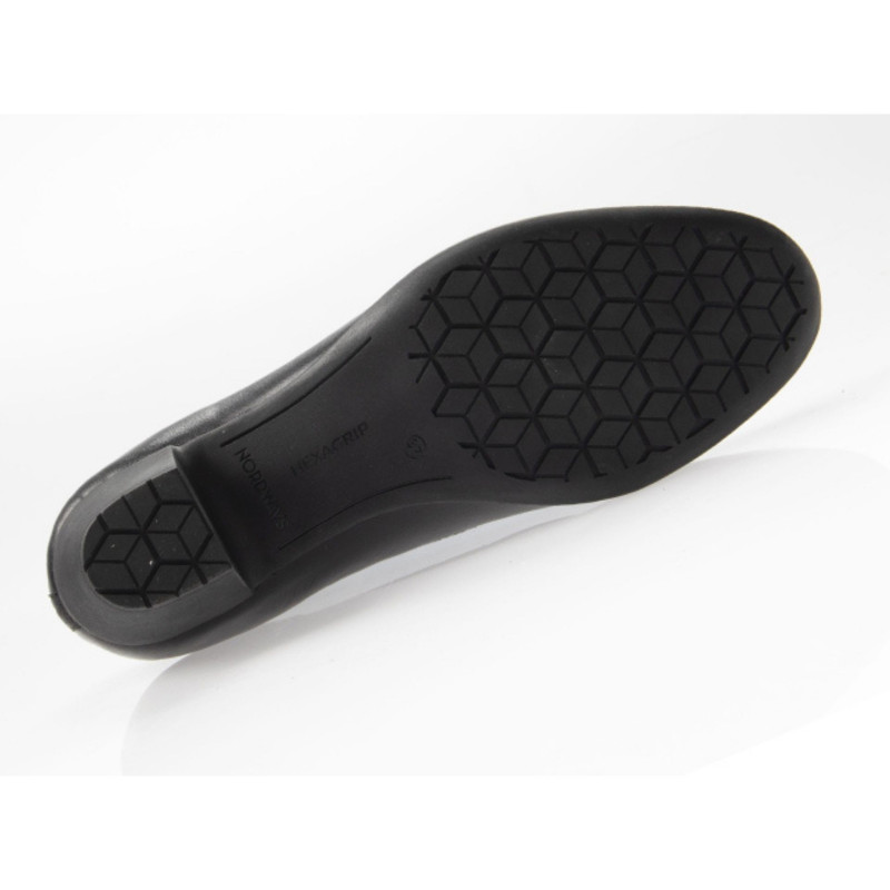 La semelle bénéficie de la technologie Hexagrip® qui permet d'avoir une antiglisse sur toutes les surfaces. En microfibre noire, cet escarpin est souple et donne un aspect de cuir lisse pour un maximum de sobriété.