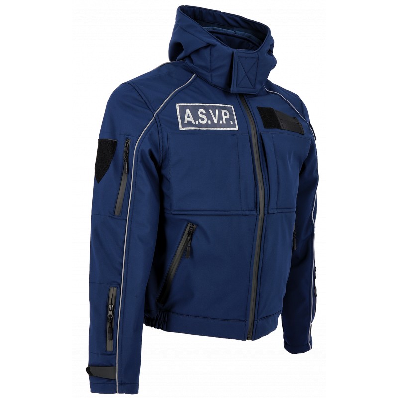 Vous apprécierez cette veste softshell ASVP au style urbain, légère et confortable, visible de loin grâce aux passepoils rétro-réfléchissants insérés et très fonctionnelles avec ses multipoches, ses passants Molle, sa capuche amovible par un zip.