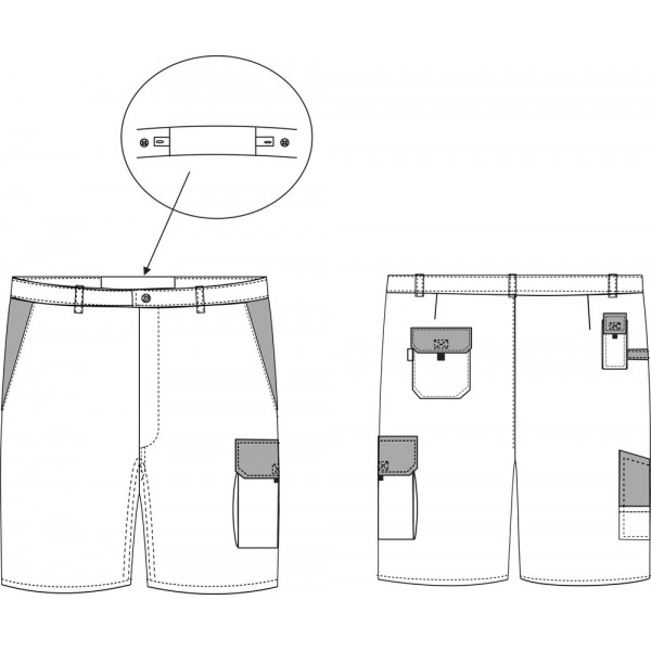 Belle qualité de fabrication et finitions soignées : braguette fermée par ZIP nylon, ceinture élastiquée dos, boutonnière de réglage à l’intérieur de la ceinture, 2 poches italiennes avec sac de poche de même tissu + entrée de poche gris, poche avec 2 soufflets côtés sur cuisse gauche avec rabat gris fermé par un velcro, double poche mètre "porte-outils" sur cuisse droite, poche téléphone - accroche marteau - poche dos avec rabat velcro - 1 pince dos. Un bermuda d’un excellent rapport qualité/prix !