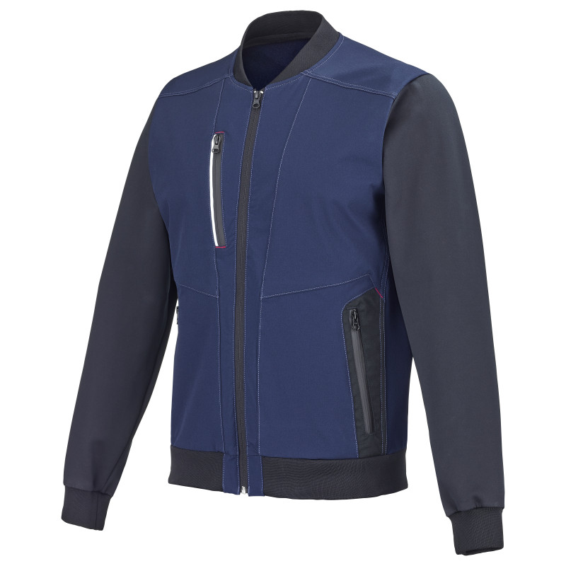 Le bombers Mow au look sportwear accorde fonctionnalités, esthétisme et performance. L’association de tissu maille et tissu stretch a permis de créer une solution au look moderne tout en garantissant les principales propriétés d’un vêtement de travail. Le tissu stretch bidirectionnel, composé majoritairement de polyamide allie légèreté et performance. Une résistance à la déchirure 5 fois supérieure à un tissu conventionnel de 300 g. Le tissu maille composé majoritairement de polyester confère résistance et confort. Des finitions bord-côtes choisies pour plus de confort et des détails rétroréfléchissants pour plus de visibilité.