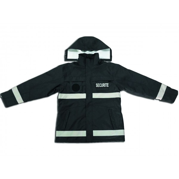 En particulier ce parka rétro-réfléchissant noir avec flaps SECURITE, totalement imperméable grâce à ses coutures étanchées.