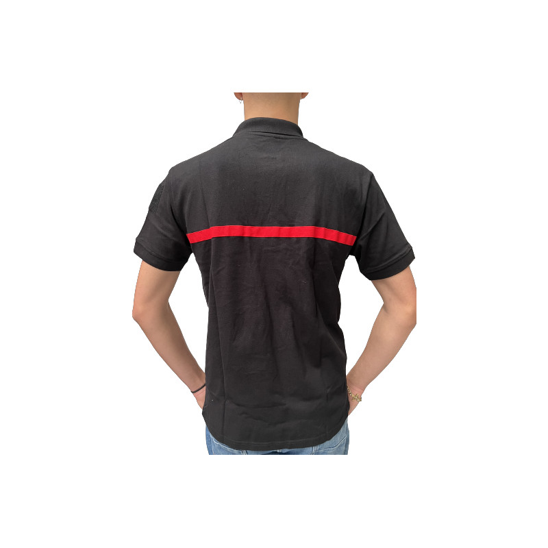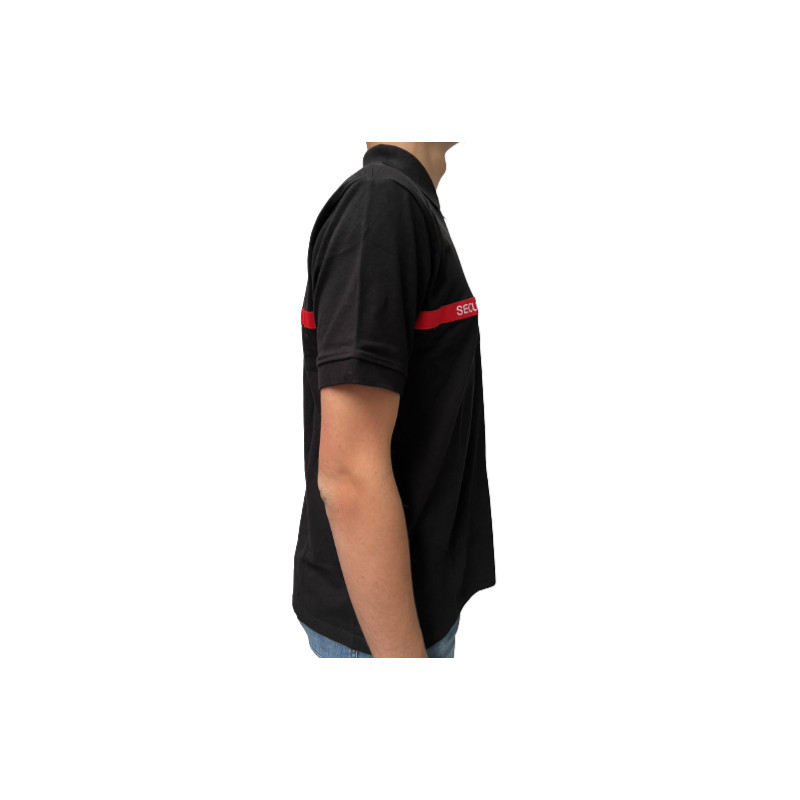 Ce polo noir manches courtes avec sa bande rouge et sa broderie blanche SECURITE INCENDIE est conçu pour les agents SSIAP.