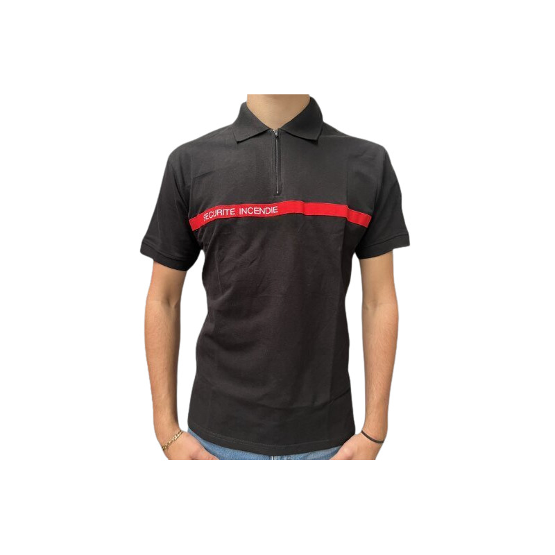 Polo unisexe noir Sécurité Incendie 50% polyester / 50% coton 210 g/m2 col zippé